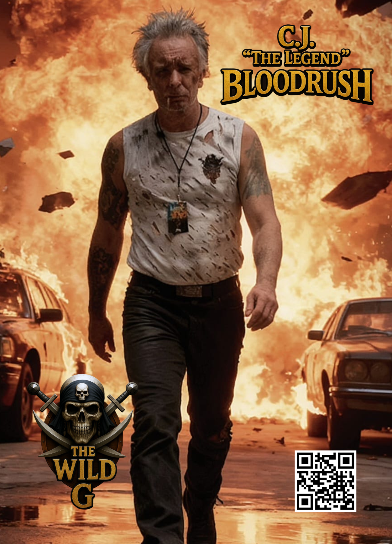 Am 11.11.1962 erblickte CJ „The Legend“ Bloodrush als unehelicher Sohn von Keith Richards und Trude Herr in Köln Nippes das Licht der Welt. Schnell musste er lernen das seine Mutter nicht nur keine Schokolade wollte sondern auch ihn nicht. So verbrachte er seine Kindheit in diversen Einrichtungen und Pflegefamilien. mit 16 riss er aus und lebte auf der Straße. Dort fiel er 1977 einem skrupellosem Metzger in die Hände und verkaufte für ihn Chrystal Mett an Grundschulen. Nach diversen Aufenthalten in der Jugendstrafanstalt schickte man ihn für 2 Jahre in ein Rehabilitationsprogramm nach Kreta wo er auf einer kleinen Farm Zwergpavillons züchtete. In dieser Zeit entdeckte er seine Liebe für die Musik. Von seinem ersten Lohn kaufte er sich eine Mundorgel und eine Triangel und schrieb seine ersten Lieder. Zurück in Köln arbeitete er zielstrebig an seiner Karriere.